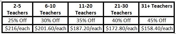 We have discounts available for group purchases. If your school or district would like to purchase 2 or more memberships for their staff you will receive discounted rates as listed below: